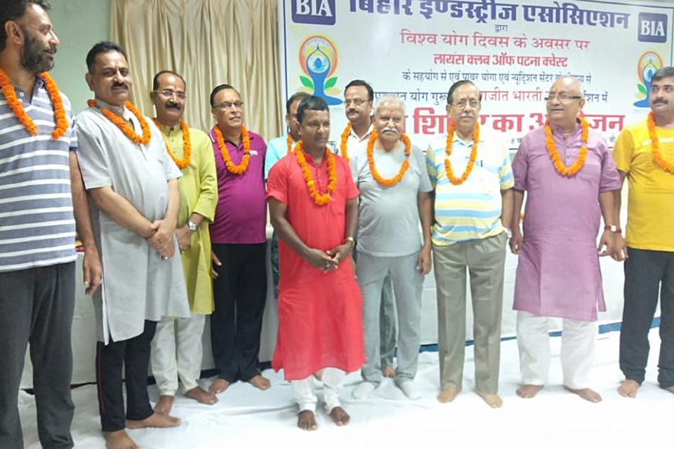 पटना: बिहार इंडस्ट्रीज एसोसिएशन के सेमिनार हॉल में अंतर्राष्ट्रीय योग दिवस पर कार्यक्रम किया गया। इस दौरान योग गुरू रंजीत भारती के नेतृत्व में जहां योग के विभिन्न आयामों के बारे में बताया गया वहीं एसोसिएशन के पदाधिकारियों एवं सदस्यों ने सुबह सुबह योग भी किया।