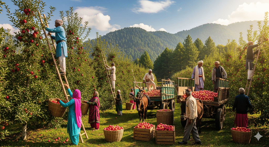 बागों में इस समय लाल-लाल सेब पूरी तरह से तैयार लटके हुए हैं, लेकिन भारी बारिश और खराब मौसम ने उनकी क्वालिटी पर असर डाला है। कई जगह फलों के गिरने की घटनाएं भी देखने को मिल रही हैं। बाग मालिकों का कहना है कि यह सीजन पूरी तरह से चौपट हो गया है। उनका कहना है कि बारिश और राजमार्गों को हुए नुकसान से सेब उद्योग को बहुत बड़ा झटका लगा है। यह उद्योग करीब 6000 करोड़ रुपये का है और छोटे किसानों की 80 प्रतिशत निर्भरता इसी पर है। तैयार सेबों को बाजार तक ले जाने का कोई साधन नहीं बचा और खरीदार भी नहीं मिल रहे हैं। पैकिंग केंद्रों पर सेबों का ढेर लगा हुआ है। मजदूरों का कहना है कि वे सेब पैक कर रहे हैं लेकिन सड़कें बंद होने के कारण उन्हें गोदामों में ही स्टोर करना पड़ रहा है। सामान्यतः 15 अगस्त तक सेब मंडियों में पहुंच जाते थे, लेकिन इस बार मौसम की मार से फसल बर्बाद हो गई है।