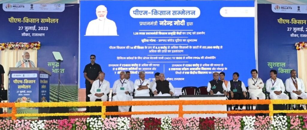 प्रधानमंत्री मोदी ने डिजिटल कामर्स प्लेटफ़ॉर्म पर 16 सौ कृषक उत्पादक संगठनों (एफपीओ) की शुरुआत की है। इससे किसानों के लिए उनकी उपज को देश के किसी भी हिस्से से बाजार में ले जाना आसान होगा। कृषि समृद्धि केंद्र के विकास के संबंध में उन्होंने कहा कि इसे वन-स्टाप शॉप में विकसित किया जा रहा है, जहां से कृषि से जुड़ी हर जानकारी, बीज, खाद और खेती के औजार जैसे संबंधित उत्पादों को उपलब्ध कराया जाएगा। यही नहीं, इस साल 1.75 लाख अतिरिक्त केंद्र खोले जाएंगे। इससे किसानों की सहूलियत में वृद्धि होगी।